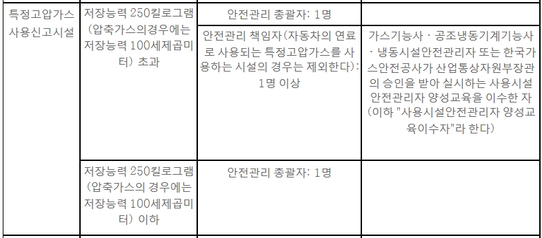 가스안전관리자 선임 및 조건 가스안전관리자 선임 및 조건