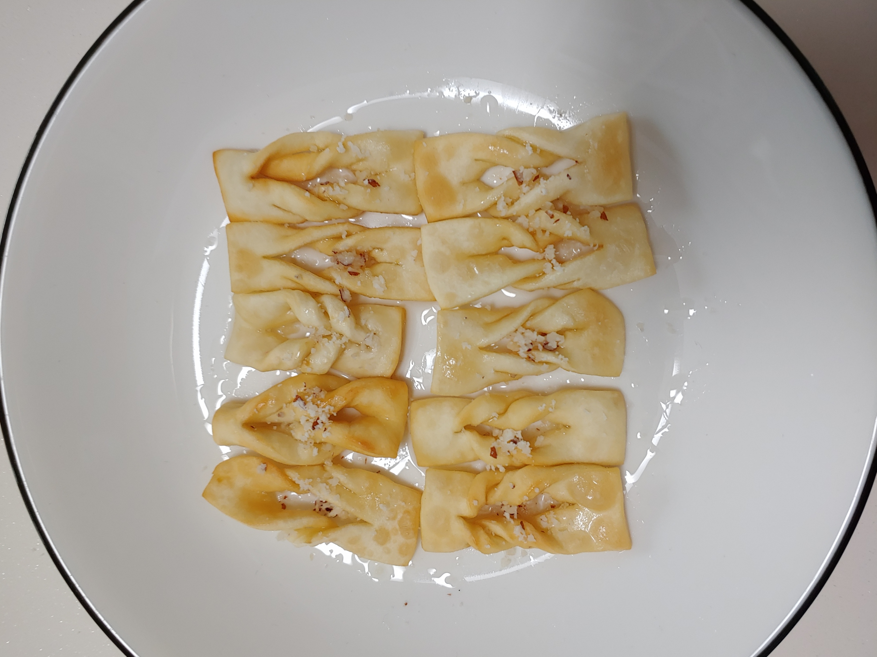 팬에 튀겨서 시럽(물,설탕)에 담갔다가 접시에 담아냅니다