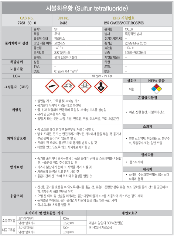 독성가스 40종 물성정보[31~40]
